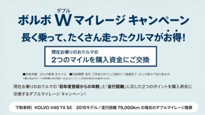 みなさま、こんにちは。ボルボ・カー岡崎です。ボルボ Wマイレージ キャンペーン長く乗って、たくさん走ったクルマがお得!現在お乗りのお車の2つのマイルを購入資金にご交換!現在お乗りのお車の初年度登録からの年数と走行距離に応じた2つのポイントを購入資金に交...