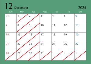 12月の営業日をお知らせいたします。