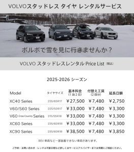 昨年ご好評いただきました、スタッドレスレンタルを今年も実施することとなりました! 積雪地域に行くためにその時だけスタッドレスを履きたい方にとってもおすすめです!