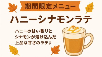 みなさま、こんにちは。ボルボ・カー岡崎です。今週末9/27より、期間限定ドリンクが変更となります!* ハニーシナモンラテ *ハニーの甘い香りとシナモンが溶け込んだ上品な甘さのラテとなっております。アイス・ホット両方ご用意可能でございます!ぜひこの機会に...